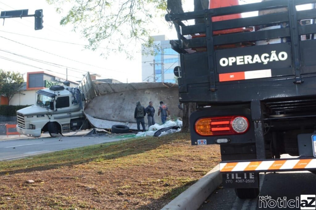 VÍDEO – Carreta que tombou é retirada da avenida Jundiaí