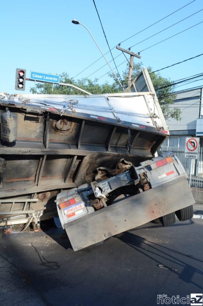 A carreta tombou na noite de sexta-feira, após fazer uma conversão proibida, na avenida Jundiaí. O motorista queria tomar o sentido da Rodovia Anhanguera. Assim que virou, a carga pode ter se deslocado e na foto da para ver como o veículo ficou. O trânsito teve que ser interrompido. .