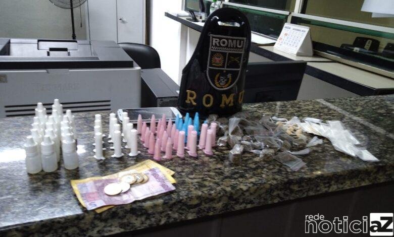 Os produtos apreendidos foram dinheiro no valor de R$ 48,75 em espécie, 64 tubetes de cocaína, 38 trouxinhas de maconha, 16 trouxinhas pedras de crack e 17 tubetes de lança perfume.