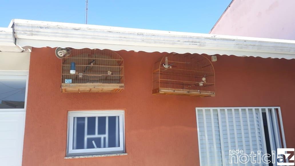 foram encontradas aves em cativeiro. Foram encontradas 12 aves silvestres em cativeiro sendo 3 com anilhas e o restante sem anilhas e sem autorização do órgão competente. As aves silvestres foram recolhidas para a sede da 4° Cia BPAmb para posterior destinação.