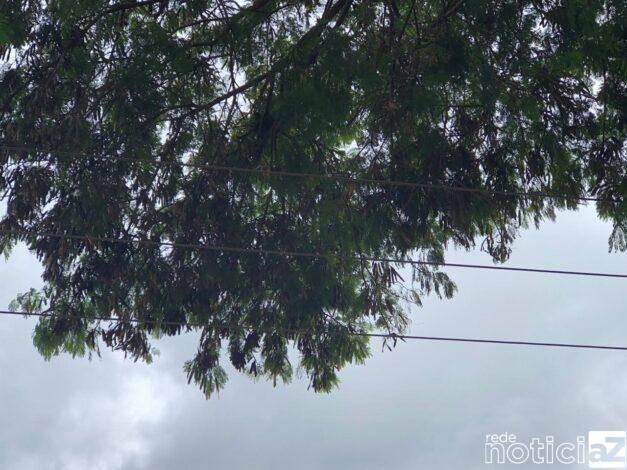 Árvore inclinada e perto da rede elétrica deixa moradores preocupados