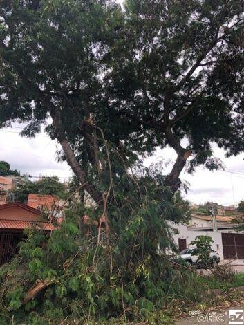 A árvore fica na avenida Alexandre Fleming, no Jardim Pacaembu, em Jundiaí. Os moradores que enviaram as fotos falaram que a árvore é de grande porte e representa riscos. Esta inclinada e perto da rede elétrica. Toda vez que chove e venta forte os galhos esbarram na rede de energia elétrica e a rua fica no apagão. Sempre a energia demora a voltar.