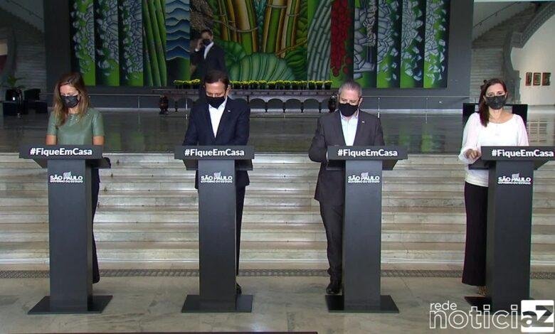 Na coletiva, o governador de São Paulo João Doria (PSDB) falou do momento mais crítico da pandemia e exibiu um vídeo mostrando a realidade dos hospitais que estão com os leitos de UTI lotados.