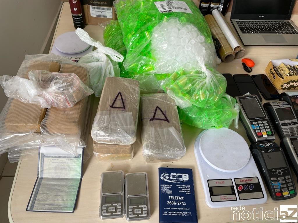 Quatro pessoas foram presas e houveram apreensões de um bloqueador de sinal, instalado numa maleta, 10 quilos de drogas entre maconha e crack, embalagens, ependorfs, balanças, 10 máquinas de cartão de crédito e débito. Além disso também foram apreendidas parte de uma carga de cosméticos para cabelo e telefones celulares.