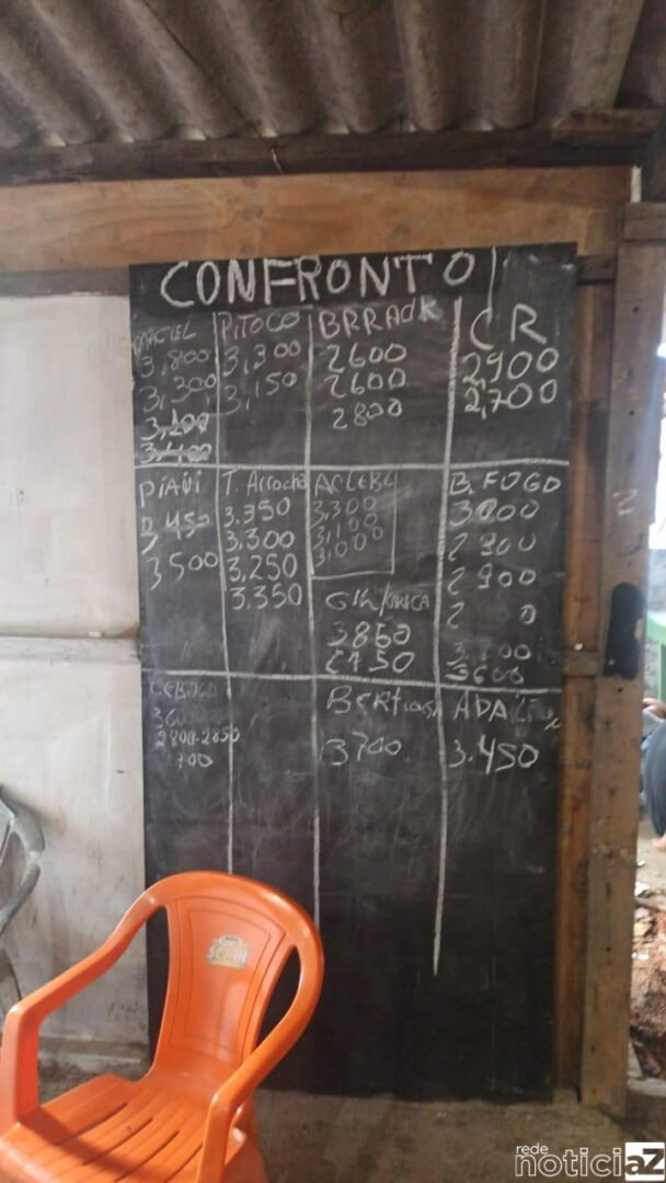 Também localizada uma lousa para controle dos confrontos entre os galos e dos valores das apostas.