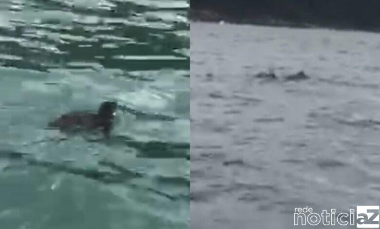 VÍDEO – Cardume de golfinhos e um pinguim são vistos na Baixada Santista