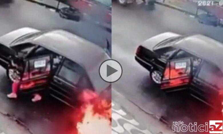 O caso ocorreu neste domingo (29), e chocou moradores do bairro Jardim Progresso. De acordo com informações, o veículo parou de funcionar no meio da via e, após o condutor tentar ligar novamente, a parte frontal do carro entrou em chamas.