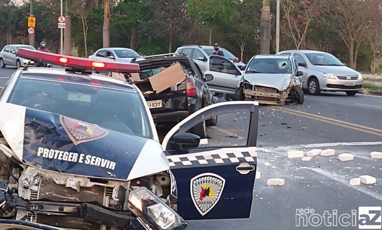 Viatura da Guarda Civil se envolve em acidente e interdita avenida