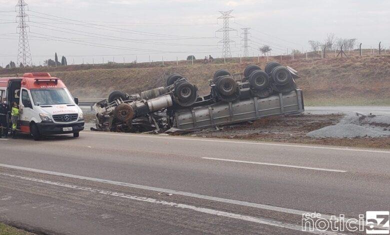 O motorista de um caminhão que transportava pedras morreu nesta sexta-feira (10) após sofrer um acidente na Rodovia do Açúcar, em Itu (SP).