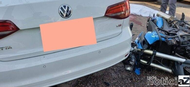 A vítima pilotava sua moto e se envolveu em colisão contra um Jetta, branco.