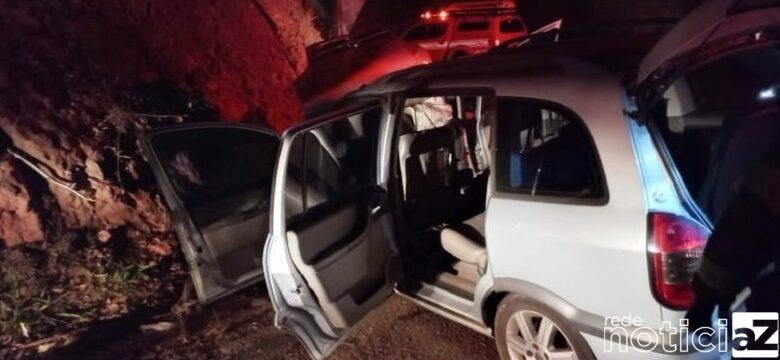 O acidente aconteceu após o carro bater contra barranco e tanto o motorista, quanto o passageiro ficaram presos nas ferragens.