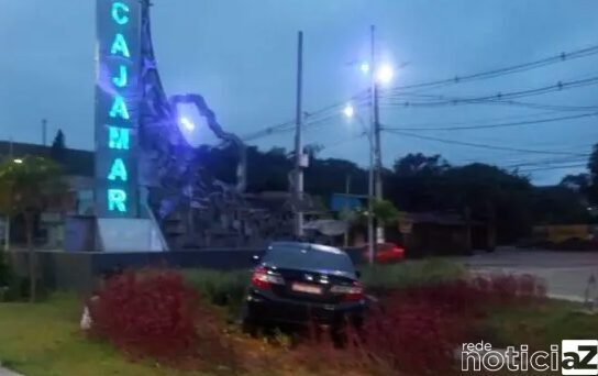 Na manhã deste sábado, após se envolver em um acidente, um taxi, invadiu a rotatória da margarida e destruiu o jardim do portal da cidade. O local fica localizado na Av. Tenente Marques no Distrito do Polvilho em Cajamar. O veículo foi abandonado no local.