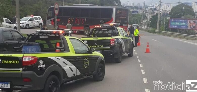 Agentes de Trânsito da Prefeitura de Jundiaí realizaram limpeza da Rodovia Vereador Geraldo Dias, na manhã desta terça-feira (19), depois que houve acidente entre ônibus e moto na rotatória da Vila Marlene.