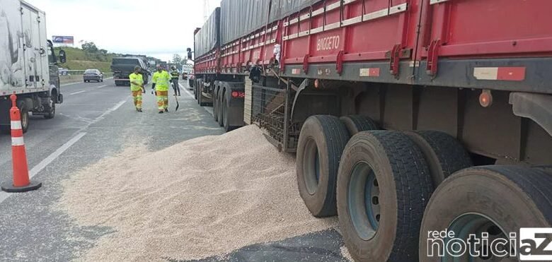 Acidente entre duas carretas derrama 5.000kg de soja na pista em Jundiaí
