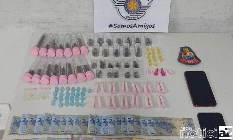 Entretanto, os policiais conseguiram prender dois indivíduos. O primeiro, de 19 anos, carregava uma sacola e uma bolsa. Na abordagem, e posterior revista, foram encontradas drogas com o rapaz, sendo 24 porções de cocaína, 25 porções de crack, dois comprimidos de ecstasy, além de R$ 134 em espécie.