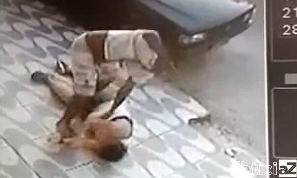 Em seguida, conforme mostra o vídeo, ele a deixa caída no solo, mas ao ver que ela vai se levantar, retorna e a agride novamente. Pouco depois, a vítima se levanta com um pouco de dificuldade e ainda desnorteada.