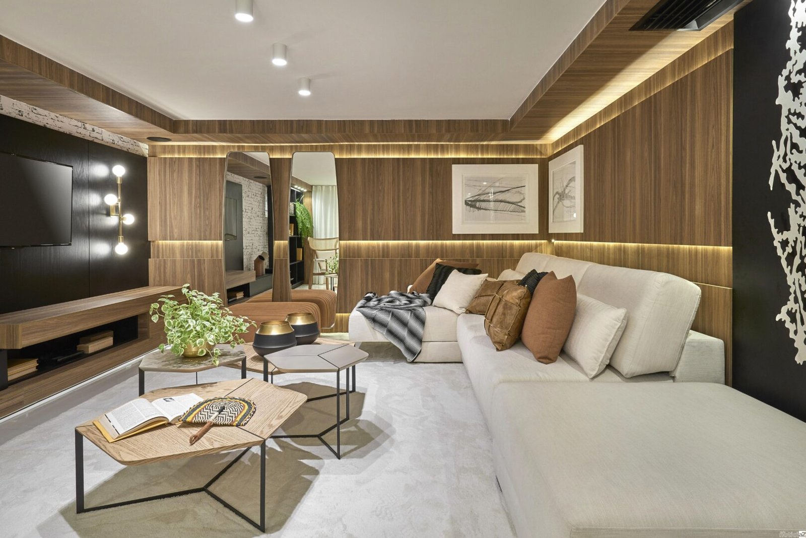 Por último e não menos importante, espelhos são também ótimas opções de decoração, especialmente se posicionados juntos. Dessa forma é possível combinar diferentes molduras e formatos e criar composições em paredes mais vazias, ou ainda, escolher uma moldura que se destaca e torna-se centro das atenções. Para halls de entrada, existem opções que permitem outras funcionalidades, como o espelho Elo que possui um cabideiro e o Nexo que além de espelho é também um aparador com nicho, ambos da Lider Interiores.