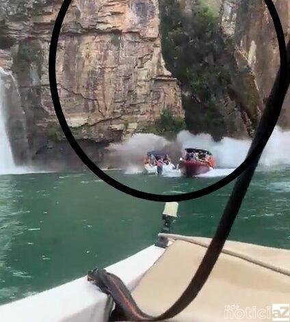 Rocha gigante cai e atinge turistas nos barcos em Capitólio