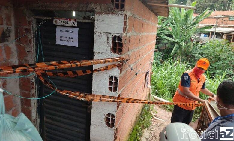 Cinco casas do bairro Estiva, em Louveira, foram interditadas pela Defesa Civil nesta quinta-feira (3) devido a riscos de desabamento. As estruturas, que já estavam comprometidas, foram prejudicadas pelas constantes chuvas que atingiram a cidade nos últimos dias.