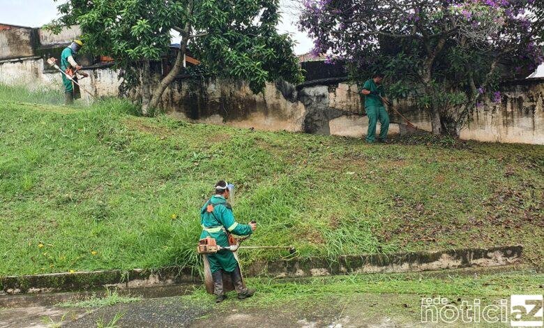 Serviços de limpeza e roçagem estão sendo executados. “A demanda ficou maior do que esperávamos por conta das chuvas do fim de semana. Tenho uma equipe trabalhando especificamente nas escolas, e outra apenas na manutenção das vias e locais públicos, declarou Neive Noguero.