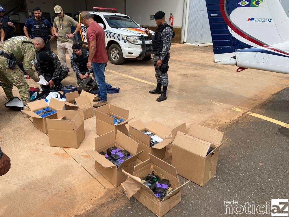 Eles abordaram uma aeronave que havia acabado de pousar. Após vistoria, as forças policiais verificaram a presença de um carregamento de celulares avaliado aproximadamente em R$ 4 milhões. O piloto e o acompanhante foram presos em flagrante e responderão pelo crime de descaminho, com pena de até oito anos. Além disso, a ação contou também com apoio da Agência Nacional de Aviação Civil (ANAC).