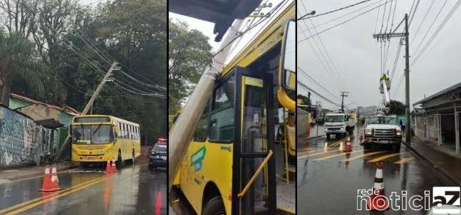 Ônibus atinge poste no Jardim Califórnia, região do Tarumã, em Jundiaí. Segundo testemunhas no local, não houve feridos.
