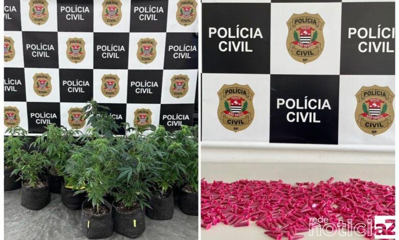 Na residência do suspeito, os policiais descobriram um laboratório com vasos contendo maconha. A Dise também localizou comprimidos de metanfetamina, ecstasy, cogumelos alucinógenos e aproximadamente R$ 2,5 mil em dinheiro. O comerciante foi preso em flagrante.
