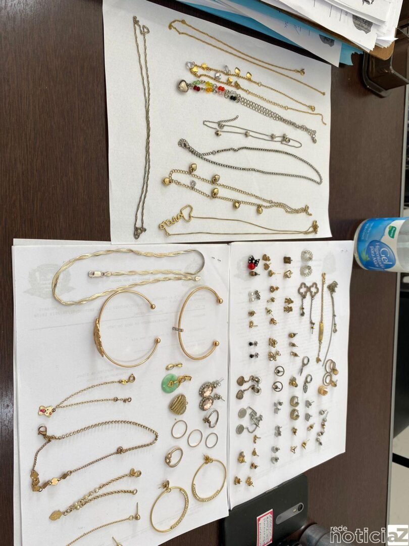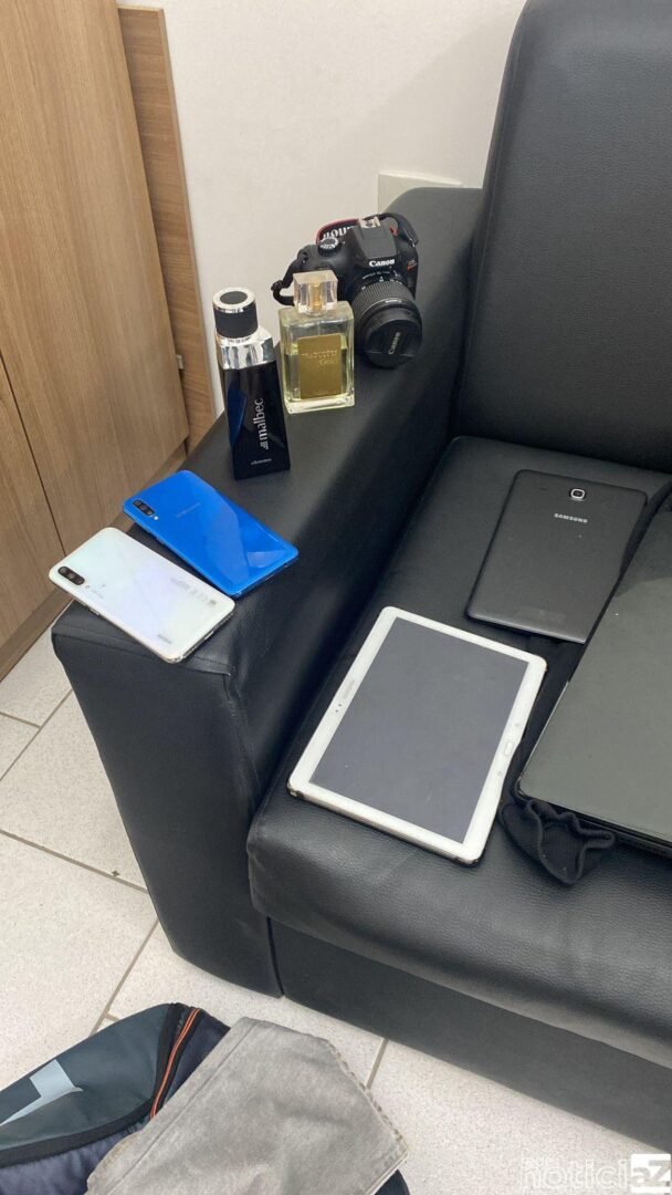 Entre os itens localizados estão: notebook, bijuterias, celulares, moedas estrangeiras, joias e diversos objetos empilhados. No momento em que a polícia adentrou o local, os individuos fugiram e um integrante foi preso.