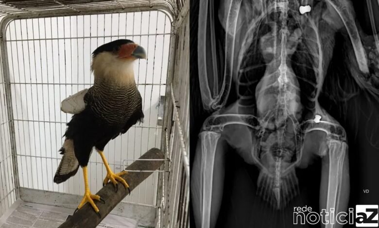 De acordo com a associação, ele foi transferido para o Centro de Reabilitação de Animais Silvestres (Cras), onde passou por procedimentos cirúrgicos, entre eles, a amputação de uma das asas e a remoção de uma das balas alojadas.