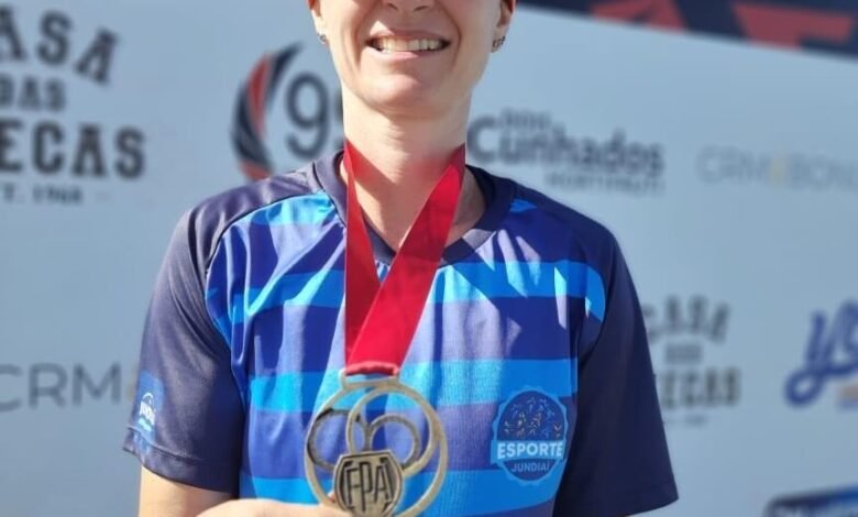 Gislaine Cristina de Sá somou duas medalhas, uma de ouro e uma de bronze, em diferentes competições: lançamento do dardo e salto com vara.