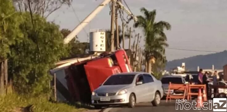 Carreta tomba na Rodovia Hermenegildo Tonoli, próximo ao Posto Bracaiúva, no trecho entre Itupeva e Jundiaí. Caso aconteceu nesta quinta-feira.