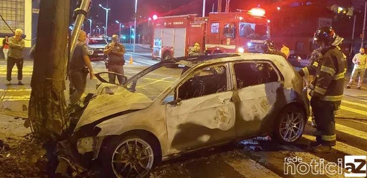 O Golf estava em alta velocidade, sem placas e o motorista fugiu do local após o acidente.