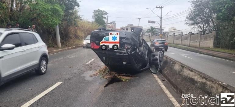 Carro capota no bairro Eloy Chaves em Jundiaí. Acidente aconteceu na manhã desta terça-feira, dia 05, na avenida Antônio Pincinato.