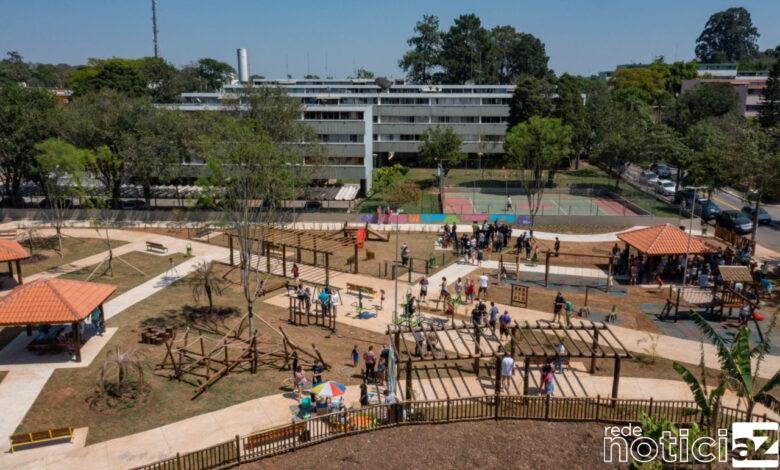 O novo espaço tem área de 3 mil² e conta com brinquedos para crianças e para os pets, iluminação em LED, academia ao ar livre, bebedouro e três quiosques.