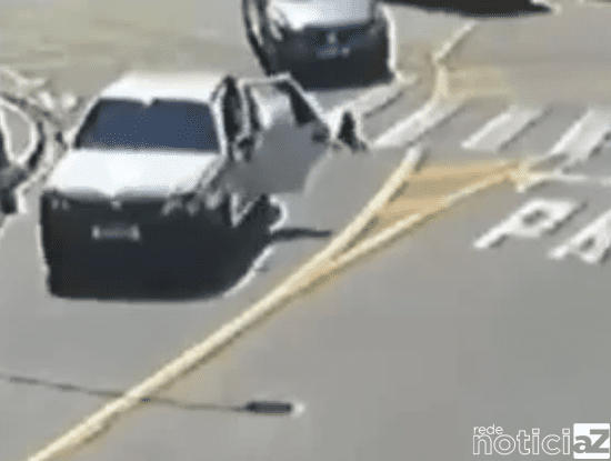 As imagens capturadas por uma câmera de segurança revelam o exato momento em que um carro de cor branca realiza uma manobra para adentrar em uma rua. Nesse instante, a porta traseira se abre e a menina cai. Logo em seguia, a porta se fecha, e o veículo segue.