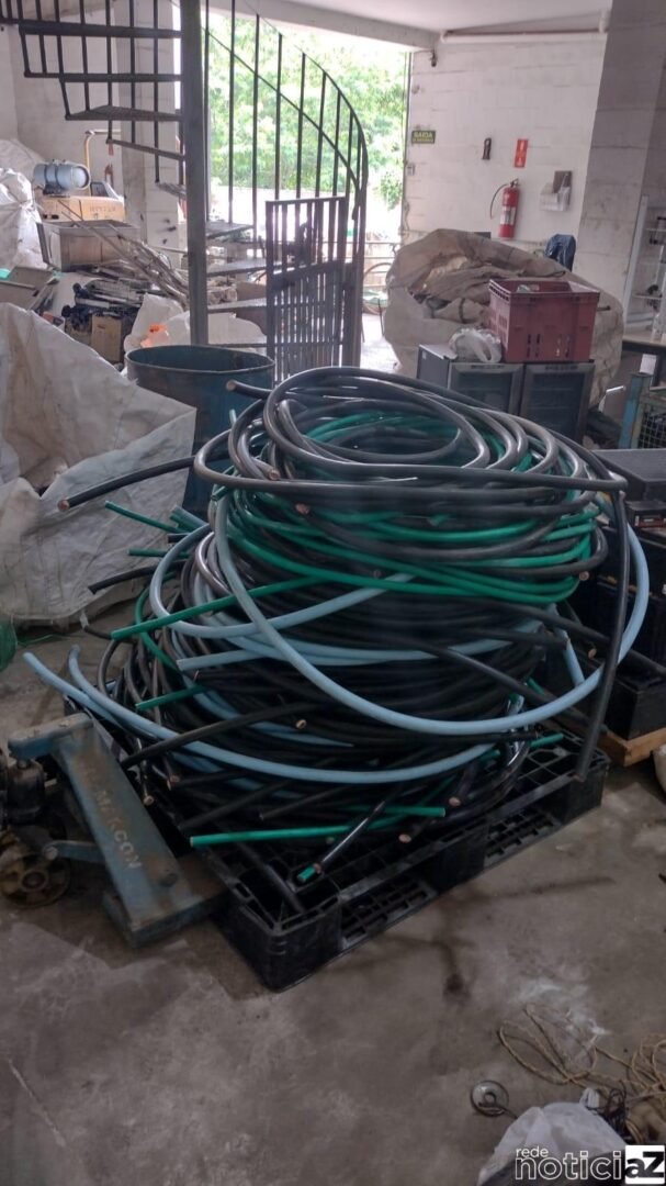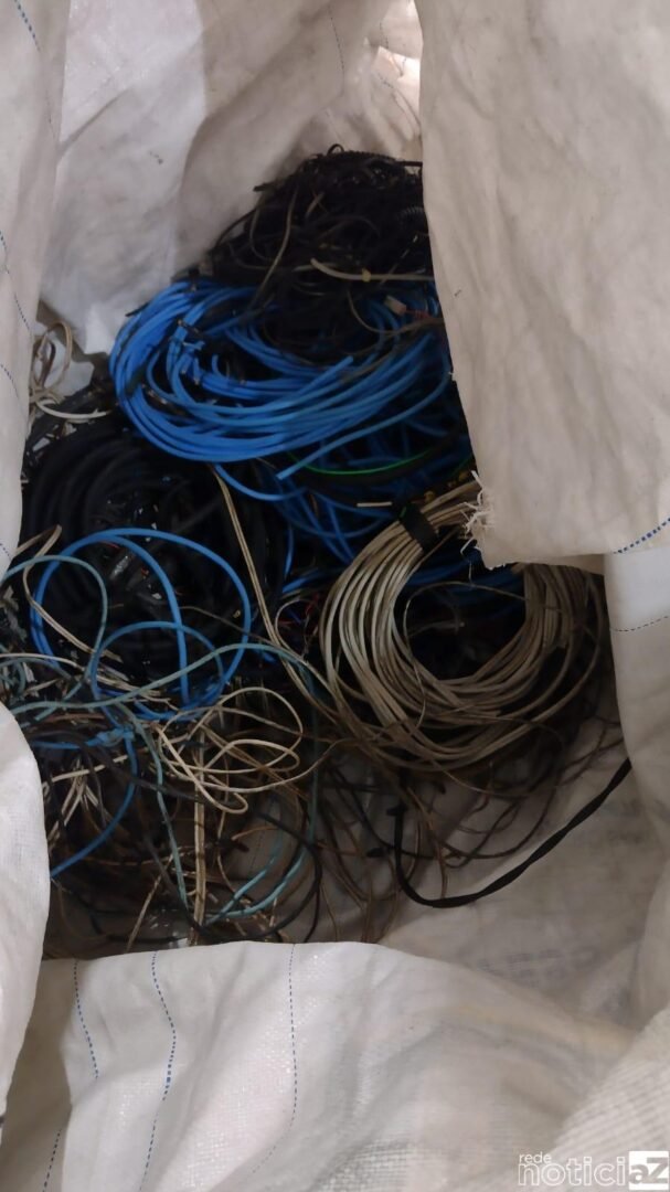 Sendo assim, Foram apreendidos 600 quilos de fios já desencapados e mais 600 quilos ainda aguardando a retirada da capa plástica, totalizando 1,2 toneladas.