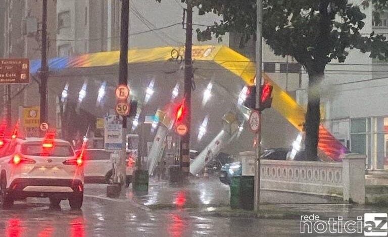 Um posto de gasolina que fica na avenida bartolomeu de gusmão na ponta da praia desabou.