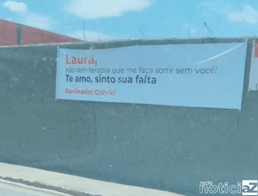 Uma faixa misteriosa surgiu recentemente em um movimentado muro da rua Braz Lopes Filho, em Cabreúva, endereçada a uma mulher chamada Laura e assinada por um homem identificado como Gabriel.