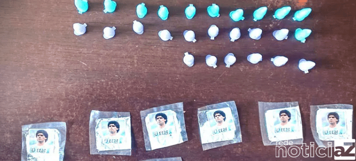 Ao perceber a presença das viaturas, o suspeito tentou disfarçar e deixou o local, mas foi abordado. Em seguida, foi averiguado que o homem havia deixado no portão, porções de drogas, incluindo maconha, crack e cocaína, todas com a imagem do Maradona.