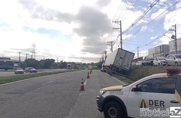 Uma carreta acidentou-se na madrugada desta segunda-feira (22) ao cair em uma valeta às margens da Rodovia Vice-Prefeito Hermenegildo Tonoli, em Jundiaí. O condutor, ao perder o controle da direção, colidiu com uma placa informativa do Departamento de Estradas de Rodagem (DER).