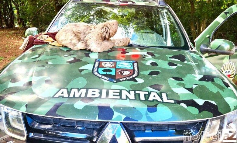 Um bicho-preguiça foi resgatado em Campo Limpo Paulista nesta quinta-feira (25) após morador deixar o animal na sede da Guarda Civil Municipal.