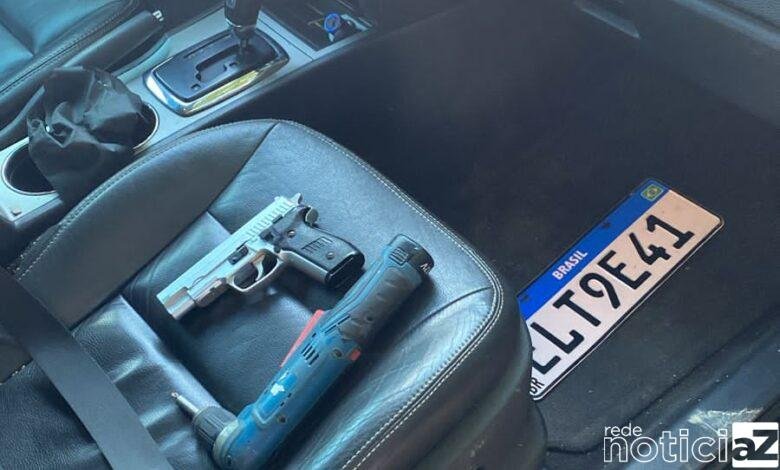 A quadrilha, associada a roubos usando um Ford Fusion preto, foi surpreendida quando o veículo foi localizado em área empresarial. Durante a abordagem, um simulacro de arma foi encontrado no porta-luvas, e a verificação revelou placas clonadas de um veículo furtado em 2023.
