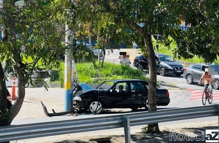 Veículo colide violentamente contra poste