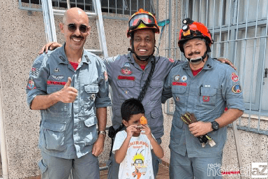 Após tentativas frustradas de resgate pelos pais, a fonoaudióloga sugeriu chamar os bombeiros. A equipe prontamente chegou ao local e, em poucos minutos, realizou o resgate emocionante, devolvendo o brinquedo ao menino, que é extremamente apegado a ele.