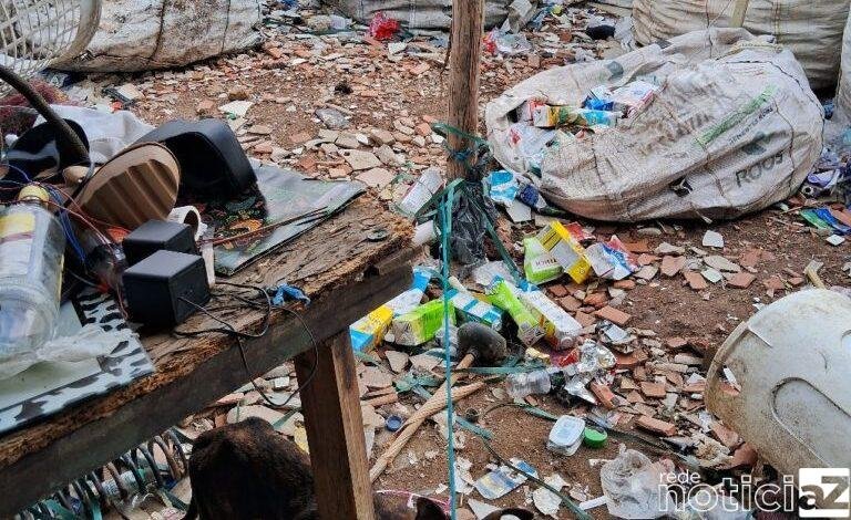 O animal estaria sem água e sem comida e que havia parido alguns filhotes a poucos dias. No local foi constatada a situação além do acúmulo de materiais recicláveis irregular.