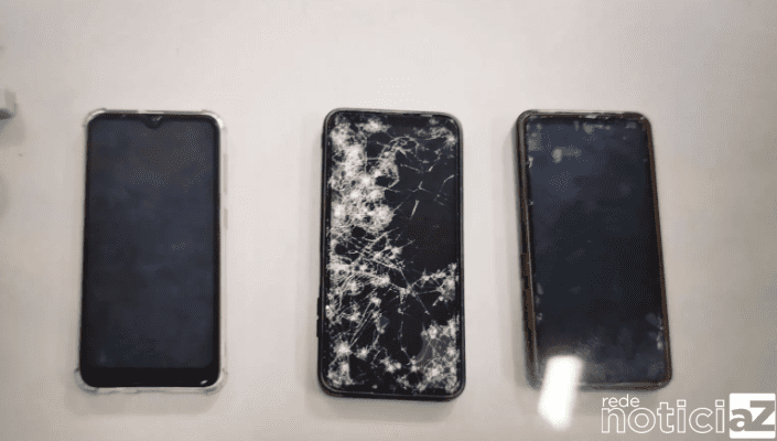 Os guardas perseguiram o suspeito e o detiveram, encontrando três aparelhos com ele. Ao ser questionado, o homem admitiu ter furtado dois celulares, alegando que o terceiro era seu. Após investigações na lanchonete, duas mulheres identificaram os celulares como sendo seus.