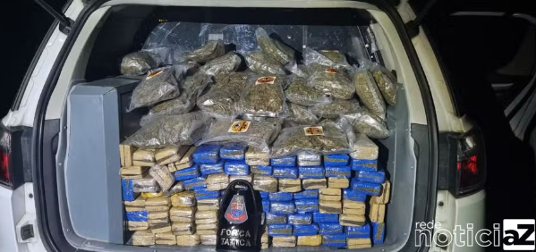 Posteriormente, o carro foi localizado em uma área de mata, junto a uma grande quantidade de drogas. Os entorpecentes foram apreendidos e o veículo será periciado. A ocorrência está em andamento.