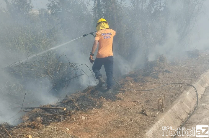 Agentes da defesa civil e bombeiros voluntários de Várzea Paulista responderam a um chamado para conter um incêndio na região da Marginal do Rio Jundiaí, na quarta-feira (8).
