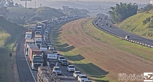 Na manhã deste sábado (18), uma carreta se envolveu em um acidente de trânsito na Rodovia dos Bandeirantes, virando em “L” e provocando um grande congestionamento no trecho entre Jundiaí e Campinas, no sentido Capital para o Interior.