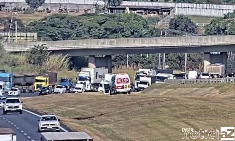 Na tarde desta quinta-feira (23), a Rodovia dos Bandeirantes precisou ser interditada no Km 68, sentido Capital, no bairro do Bom Jardim, em Jundiaí, devido a um grave acidente. Uma colisão envolvendo dois carros e uma carreta bloqueou completamente a pista.